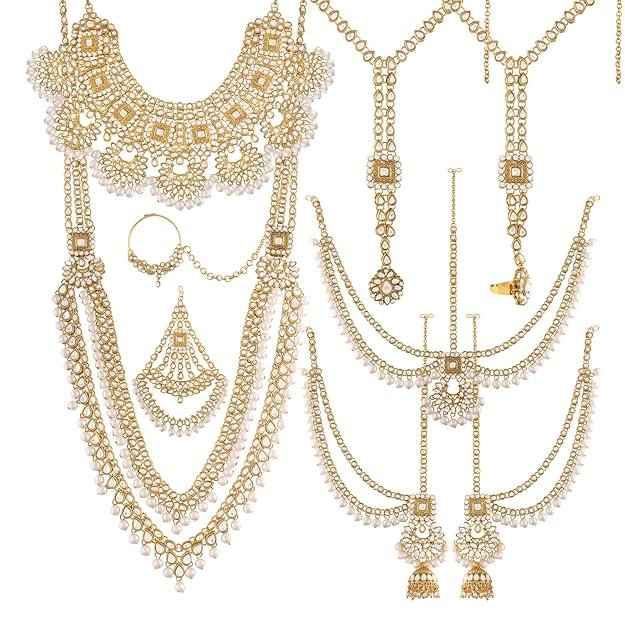 18K Gold Plated Traditional Handcrafted Faux Kundan & Stone Studded Bridal Jewellery Set
