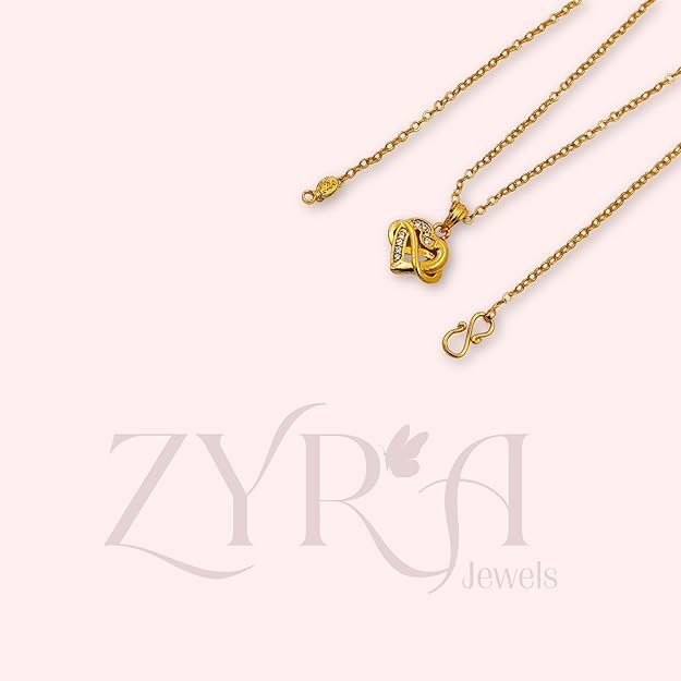 1 Gram Micro Gold Plated Heart Necklace Chain and Sleek Pendant Locket with Zircon Stones