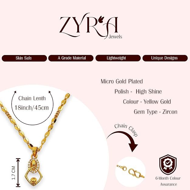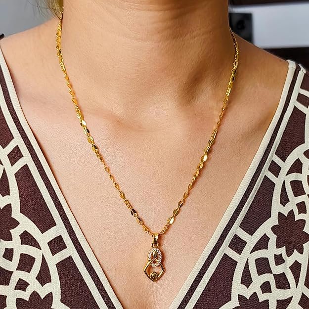 1 Gram Micro Gold Plated Stylish Geometric Pendant Chain with CZ Accents