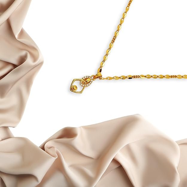 - 🌟 Stylish & Lightweight – Unique Geometric Pendant, Modern design fused with ethnic elegance Flat link chain for comfort and daily wear durability
