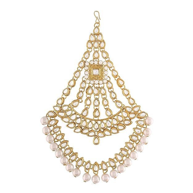- DIMENSIONS: Long Necklace Length – 19.5 inch x Width - 3 inch, Choker Necklace Length - 10 inch x Width – 3 inch, Earring Height - 3 inch x Width – 2 inch, Hath Panja Length – 6 inch x Width - 7 inch, Nose Pin Length – 4.5 cm Chain – 10 inch, Passa Length – 5 inch x Width – 4 inch, Matha Patti Length - 12 inch x Width – 3 inch