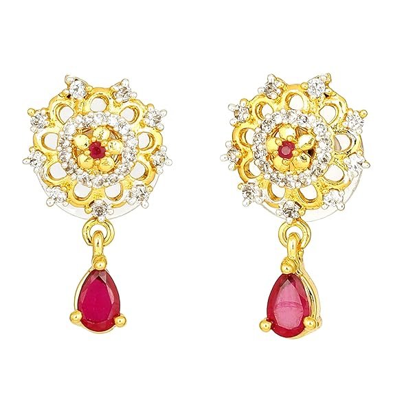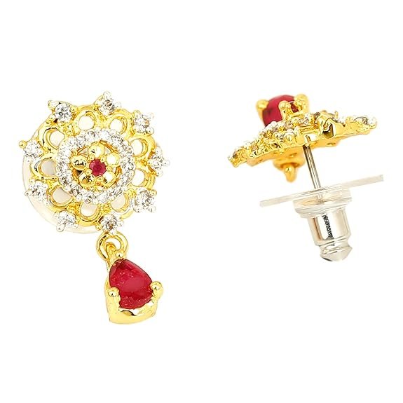 24 Kt Gold Plated American Diamond Nakshatra Ruby Drop Earrings