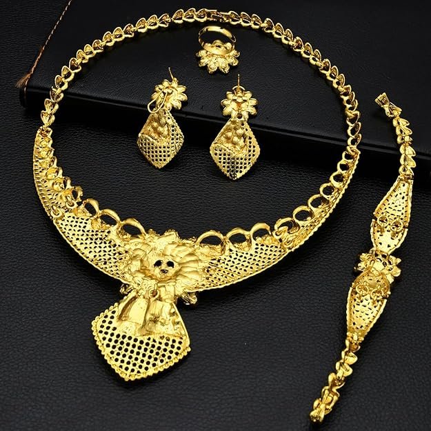 24ct Gold Plated Brass Bridal Wedding Choker Necklace Set with Earrings
