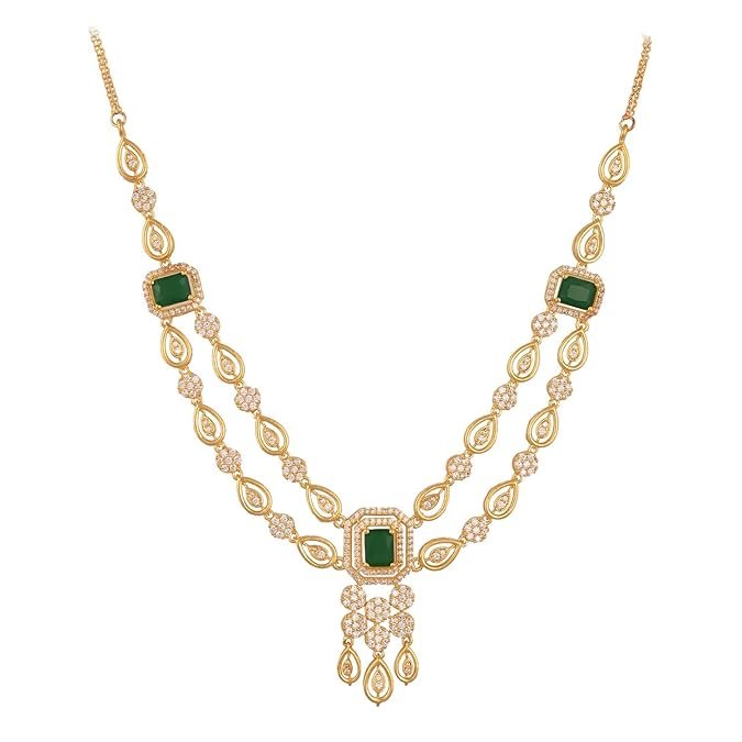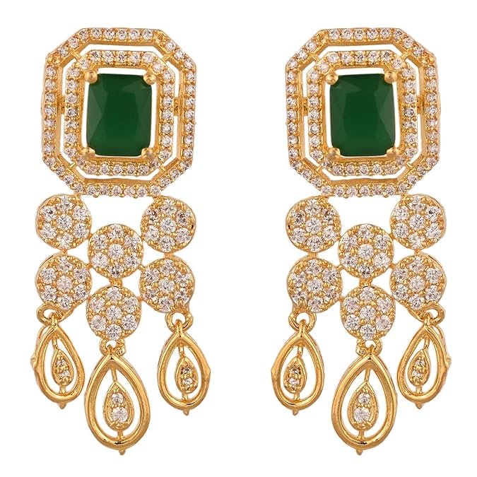 Gold Plated American Diamond Cubic Zirconia Studded Drop Necklace Jewellery Set With Dangler Earrrings