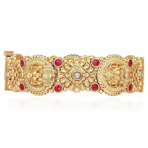 Gold Plated Goddess Laxmi Thick Synthetic Stone Studded Single Piece Openable Kada Bangle Antique Jewellery