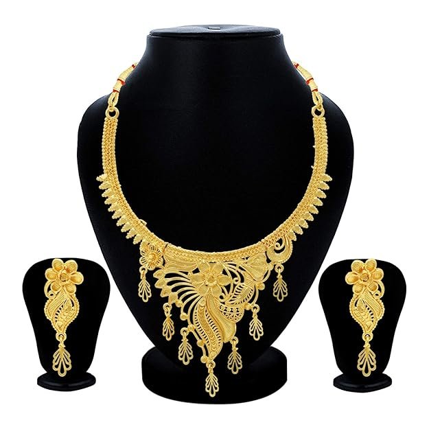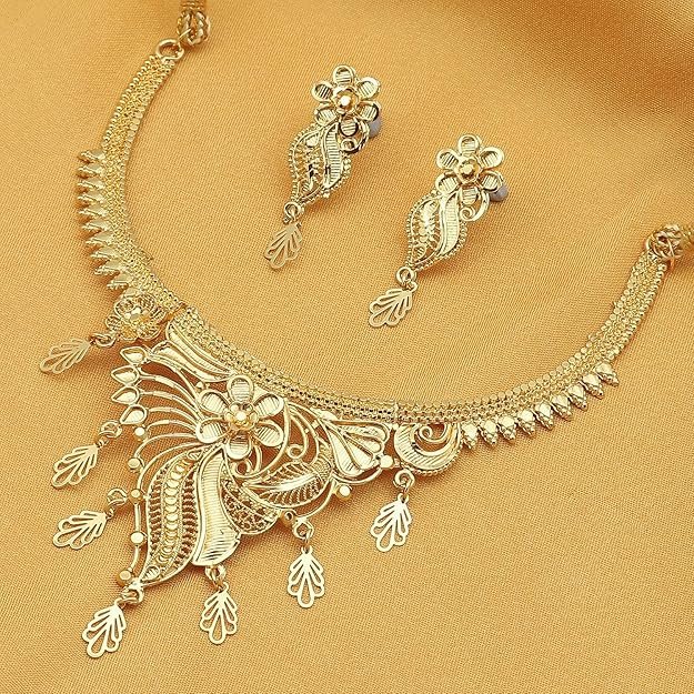This Lavish 24 Carat Gold Plated Floral Choker Necklace Set for Women. This Necklace Set offers a wide range of wedding jewelry. It is every woman’s essential to have a beautiful Necklace set all the time, since they are so elegant and eye-catching for special wedding and festive occasions. The array of jewelry we present is the perfect blend of tradition and modernity that looks sophisticated yet conventional. These Necklace sets are suitable for women and girls of all ages.