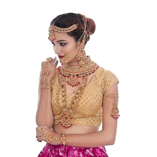 Lucky Jewellery Bridal Dulhan Alloy Gold Plated Jewellery Set